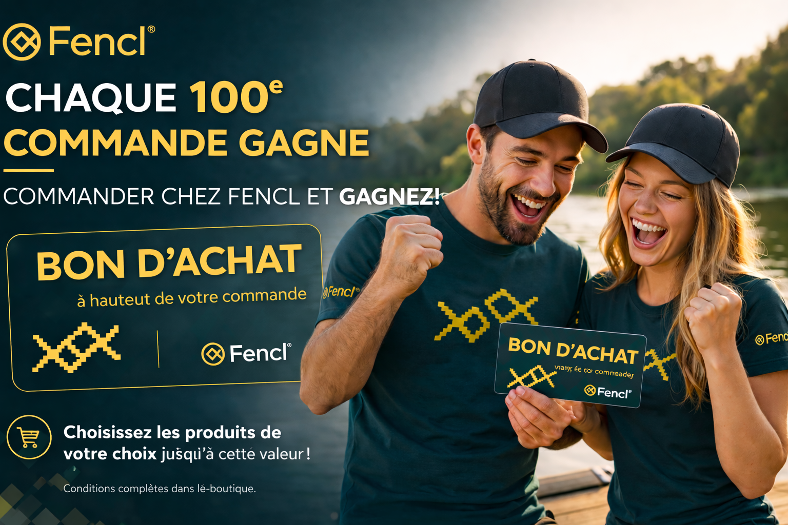 - Chaque 100e commande payée (par ex. 100e, 200e, 300e, etc.) est une commande gagnante.